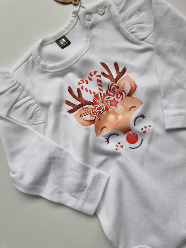 Body białe długi rękaw z falbankami renifer rozmiar 68