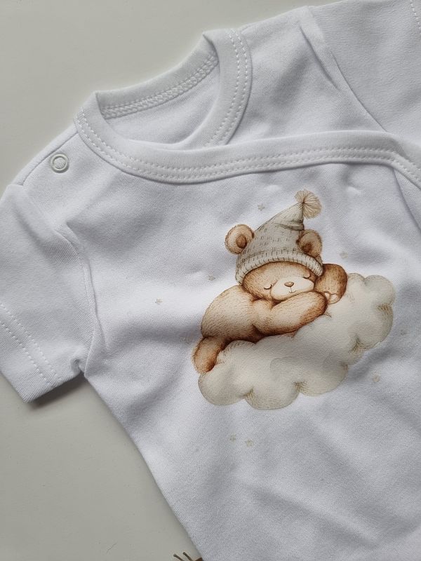 Body kopertowe białe krótki rękaw miś na chmurce rozmiar 68