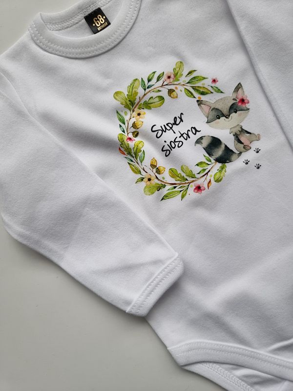 Body białe długi rękaw z zieloną muchą rozmiar 68