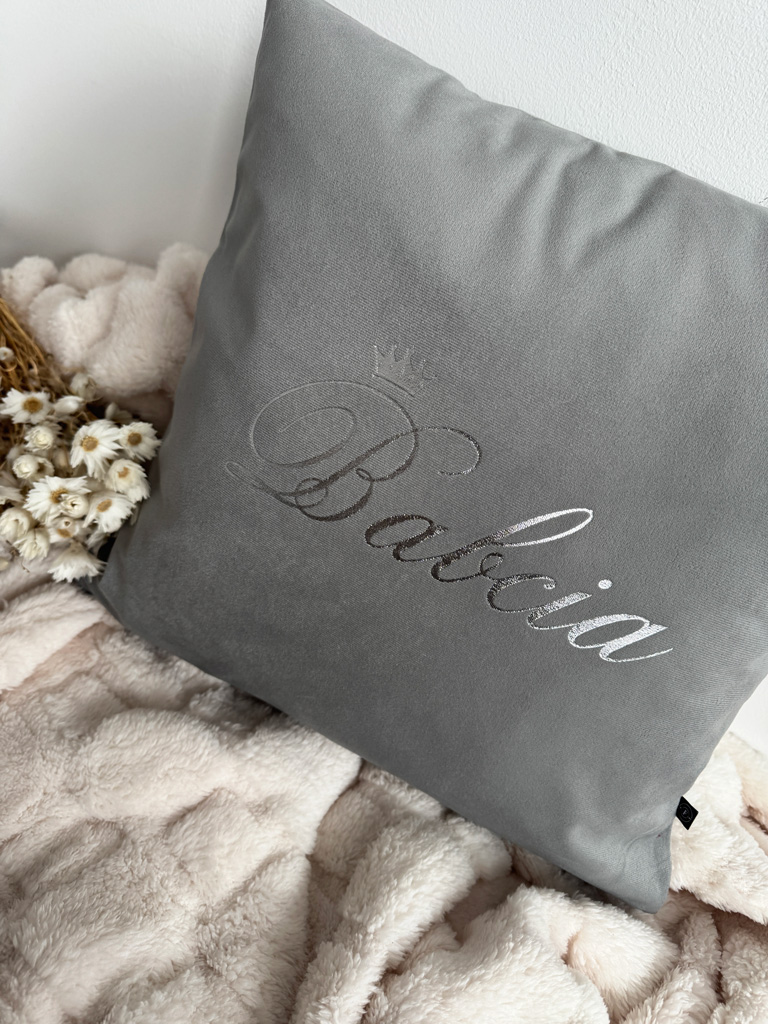 Na szarych poszewkach nadruk jest srebrny, na pozostałych kolorach nadruk wykonujemy złoty.