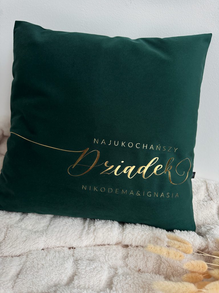 Na szarych poszewkach nadruk jest srebrny, na pozostałych kolorach nadruk wykonujemy złoty.