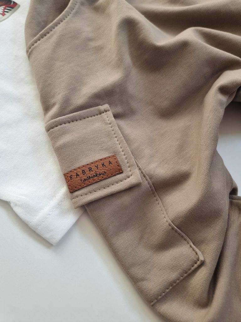 - Spodnie posiadają boczne kieszenie oraz dodatkową kieszeń naszytą na boku nogawki