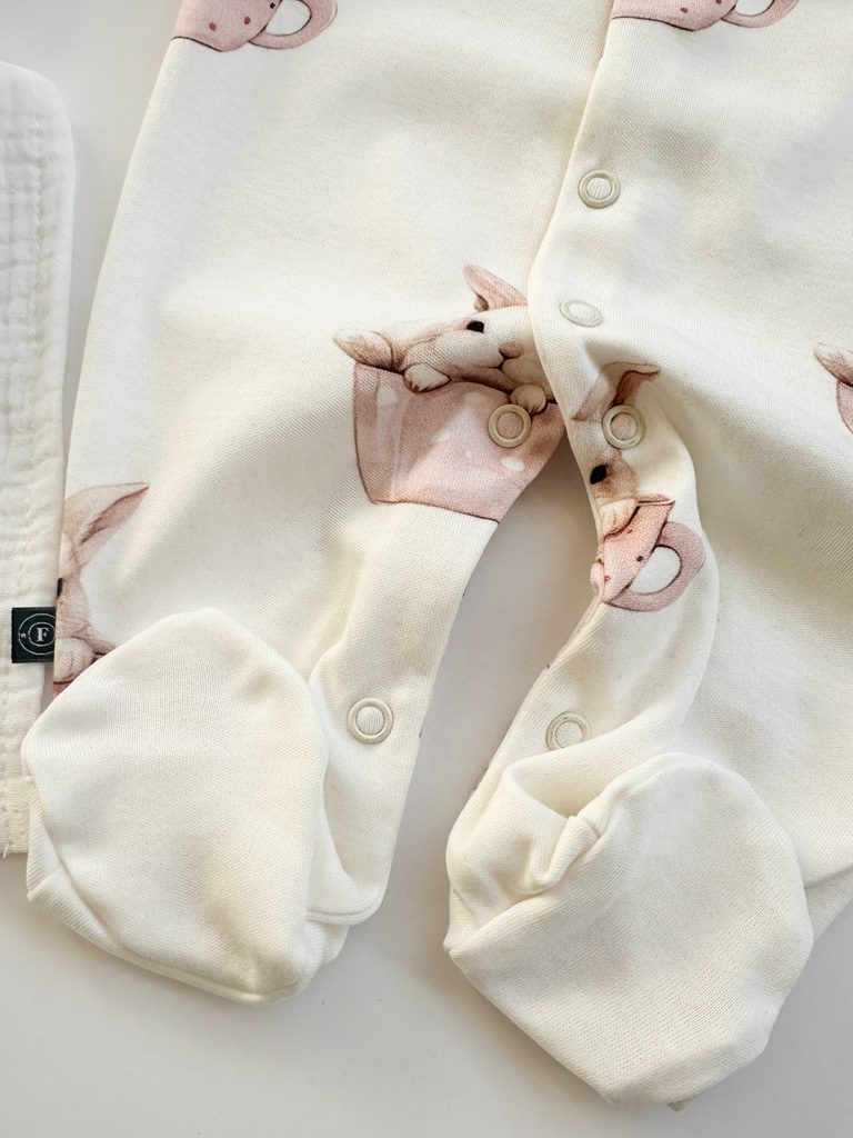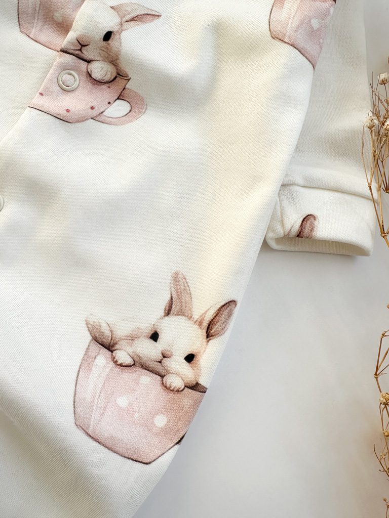 Bawełniany pajac niemowlęcy ze stópkami króliczek w filiżance