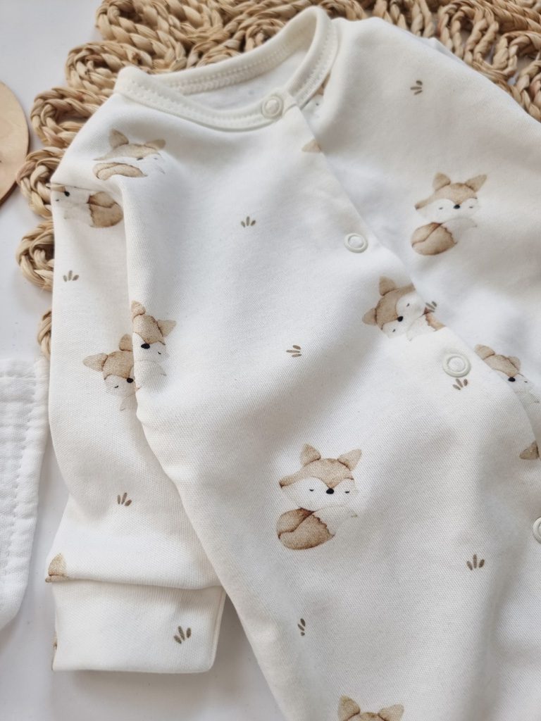 - Posiada długi rękawy i długie nogawki zakończone stópkami, co zapewni okrycie całego ciała niemowlęcia.
