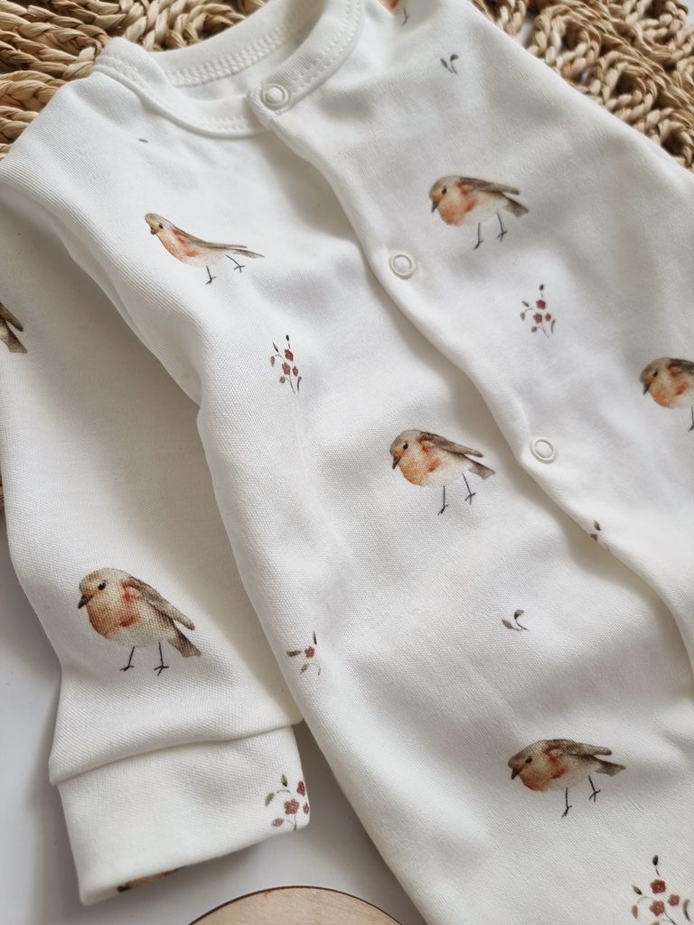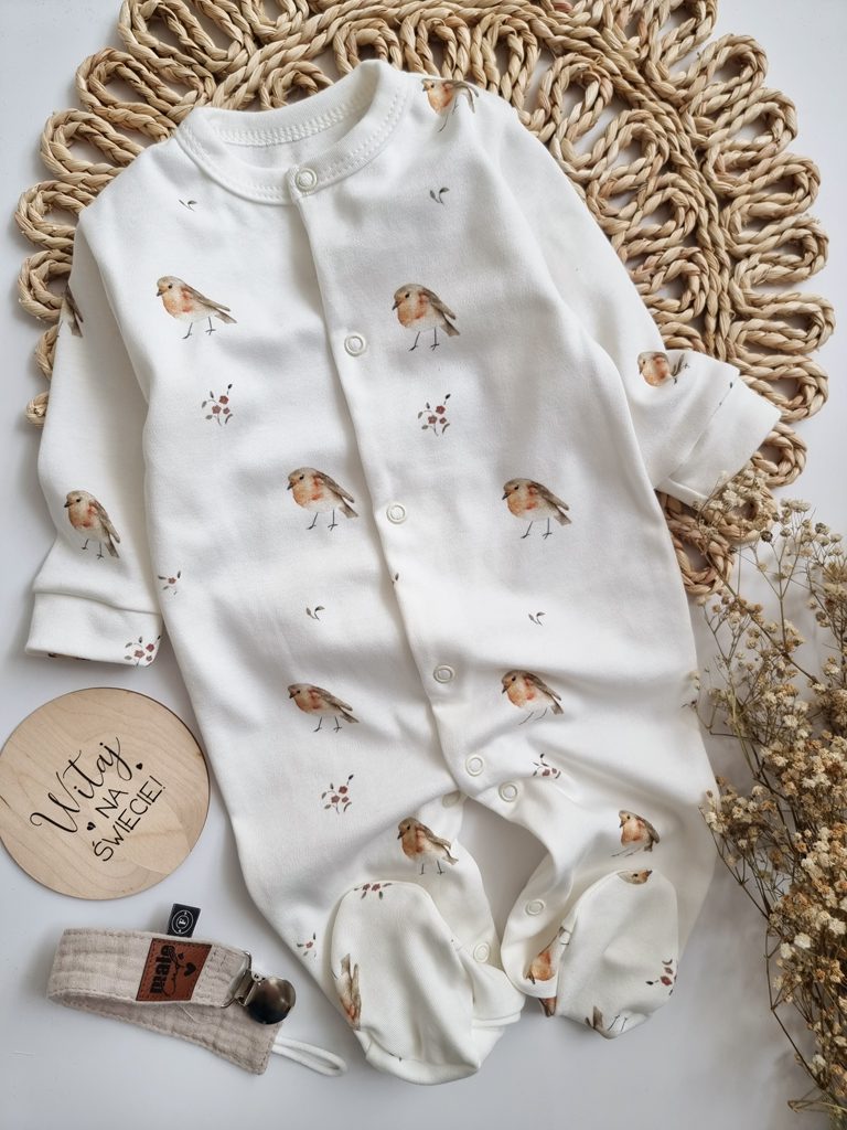 Bawełniany pajac niemowlęcy ze stópkami boho motyle
