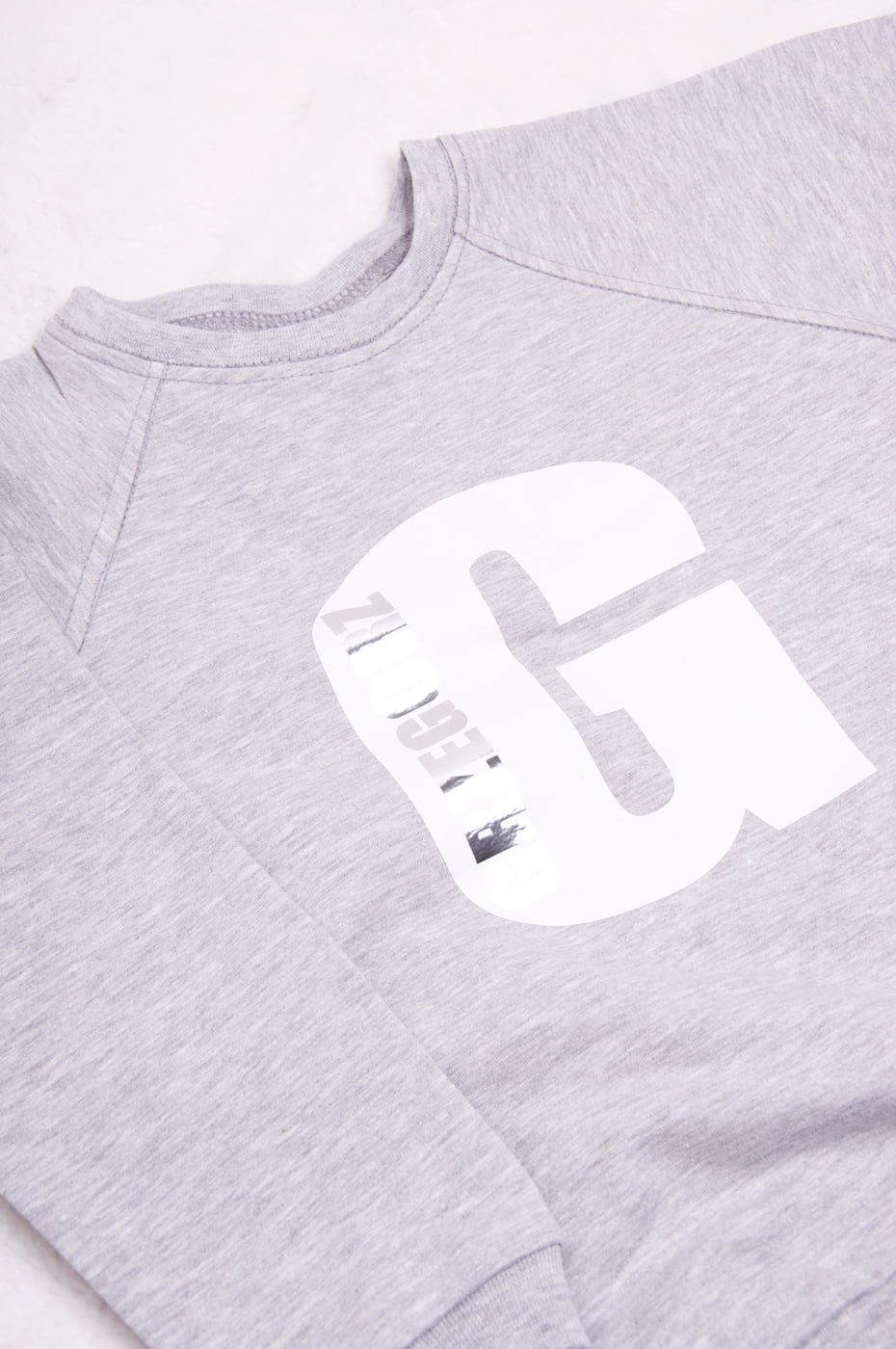 Bluza jest koloru szarego i posiada biały nadruk inicjału oraz srebrne imię.