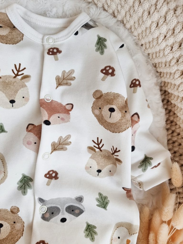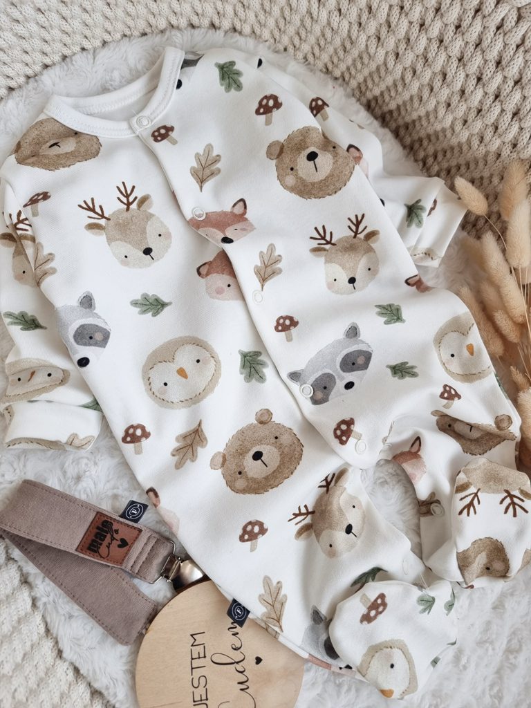- Zapinane na napy. Zapięcia znajdują się przy ramionach, na boku oraz w kroku.