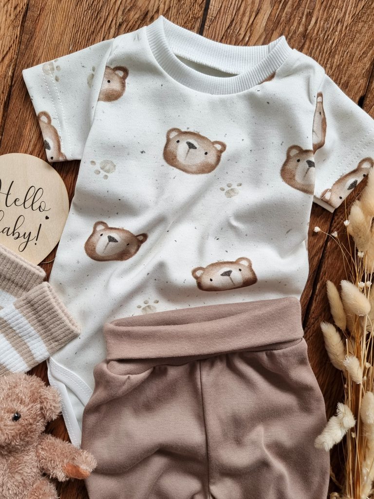 - Zapinane na napy w kroku. W rozmiarach 62-74 napy znajdują się również przy kołnierzyku.