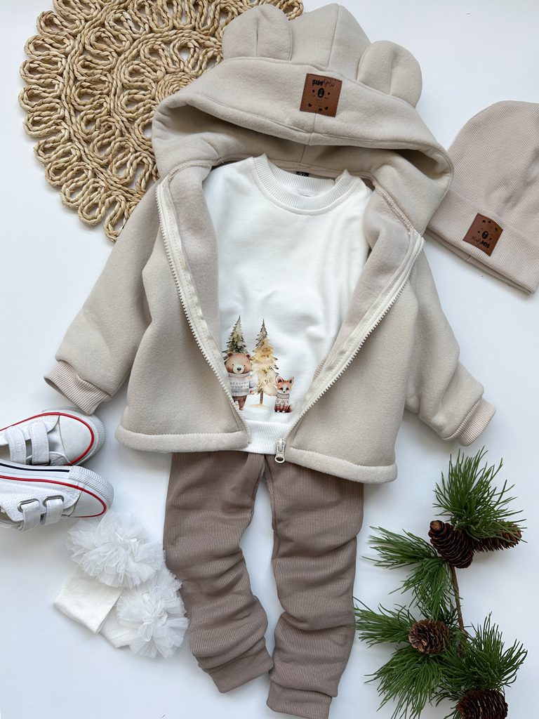 - Uszka naszyte na kapturze dodadzą uroku słodkiego misia Twojemu dziecku.
