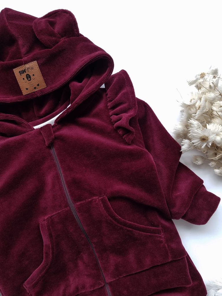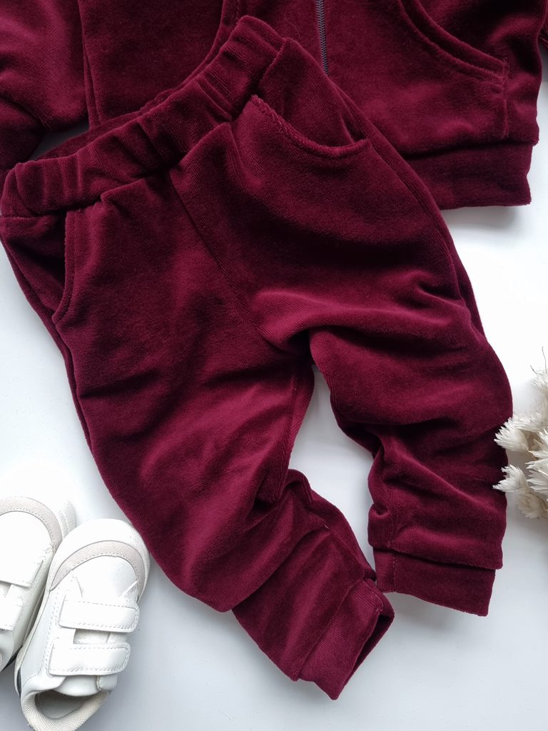 - Komplet składa się z bluzy na suwak oraz spodni z kieszonkami po boku.