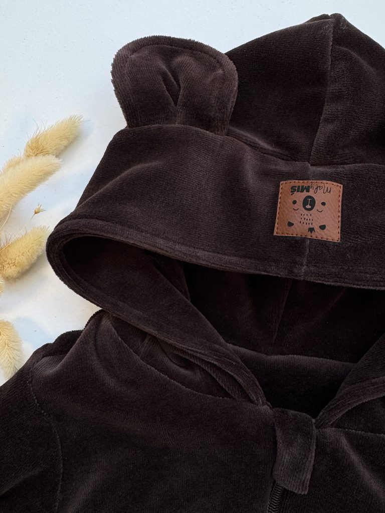 - Komplet składa się z bluzy na suwak oraz spodni z kieszonkami po boku.