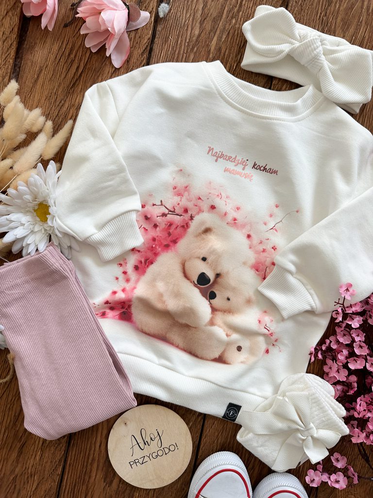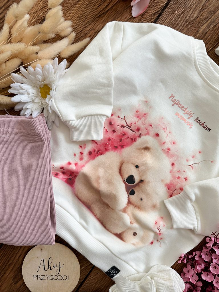 Bluza dziecięca misie w kwiatach wiśni