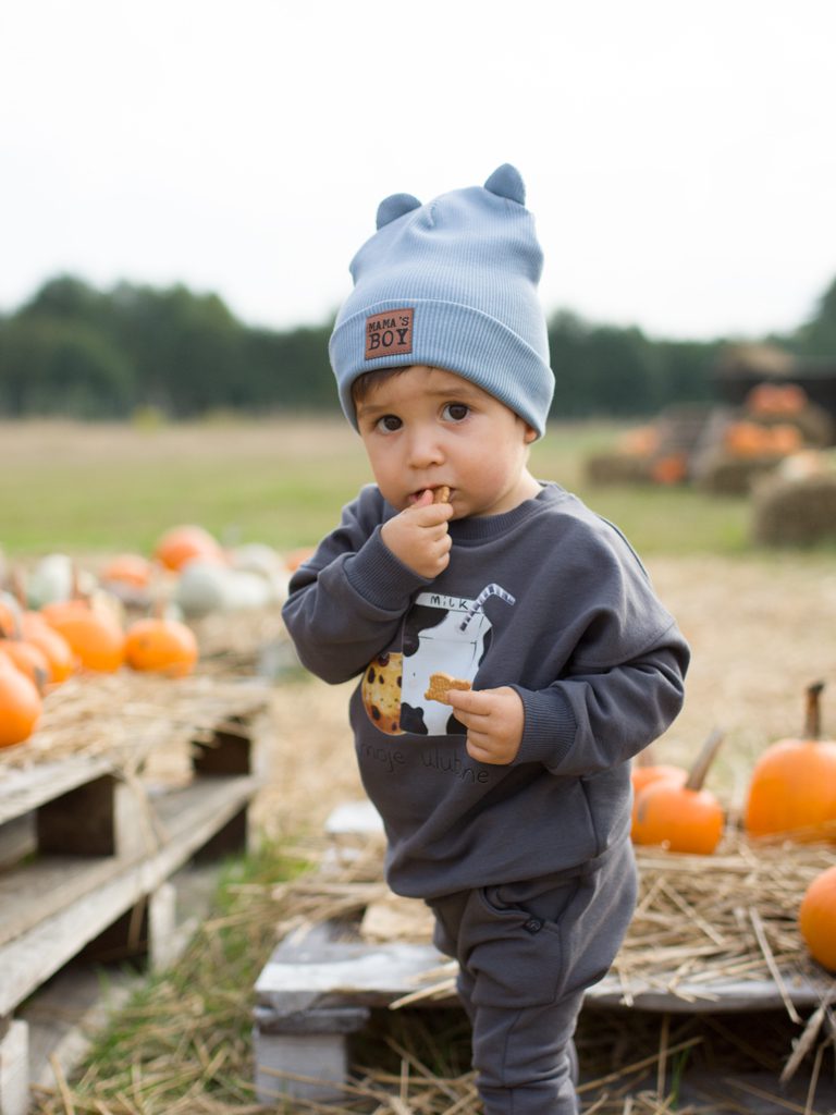 Grafitowy komplet dresowy z nadrukiem mleka i ciasteczka bluza + spodnie