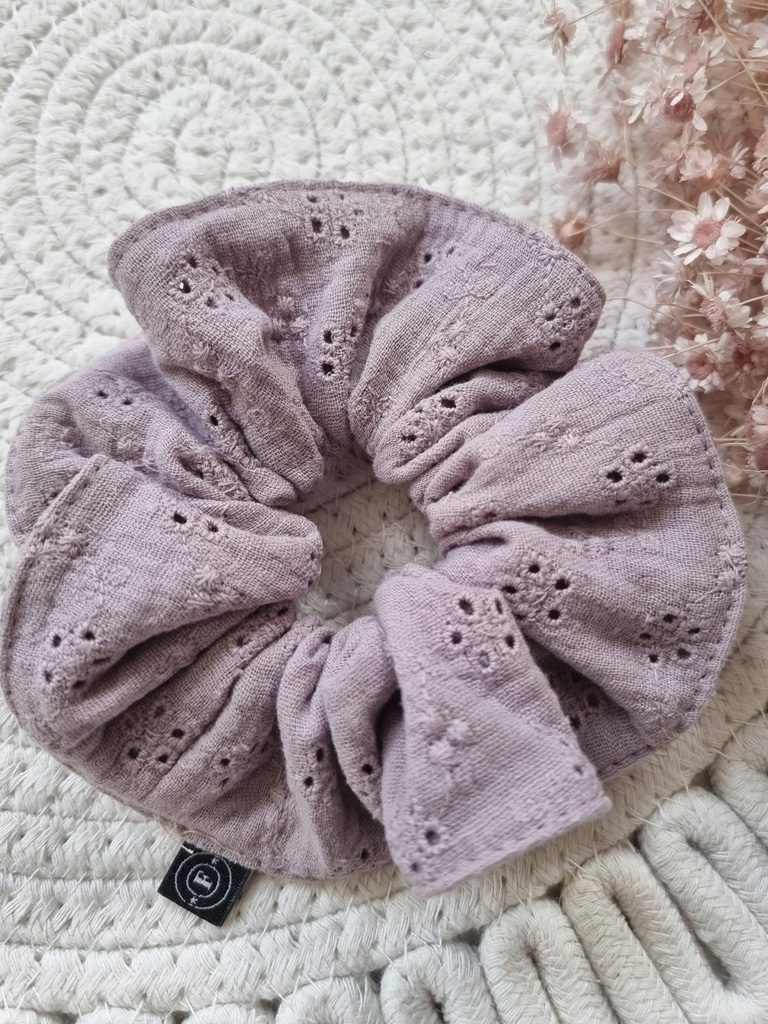 Gumka scrunchie do włosów muślinowa wrzosowa
