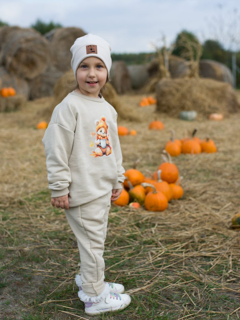 Jasnobeżowy komplet dresowy jesienny miś z herbatką bluza + spodnie