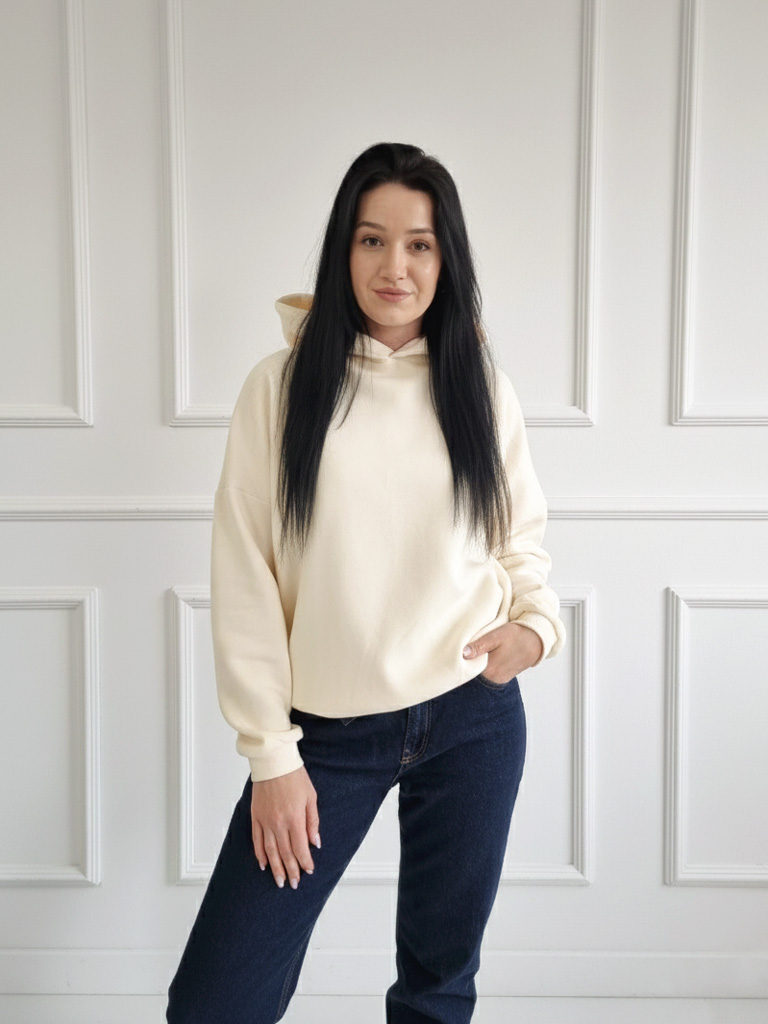 Bluzy oversize z kapturem w kolorze waniliowym.