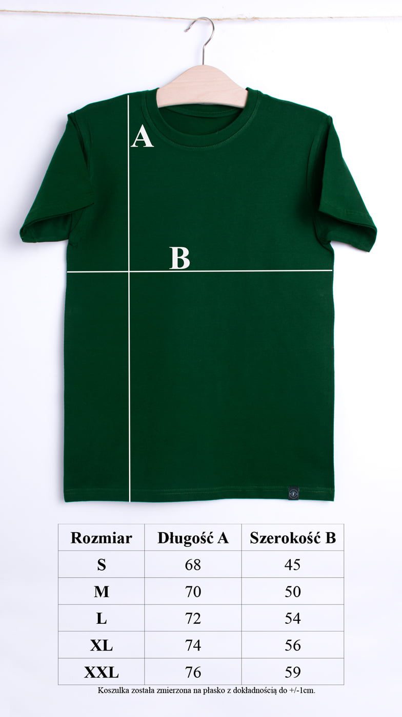 Koszulka damska jest w kolorze butelkowej zieleni – koszulka dziecięca natomiast jest biała. Dla dziewczynki wykonujemy napis brokatowy a dla chłopca gładki matowy.