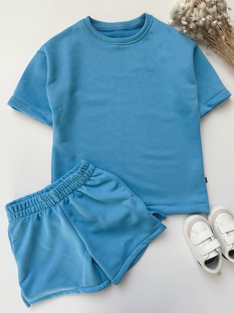 - Komplet składa się z koszulki i z krótkich spodni z kieszonkami po boku.