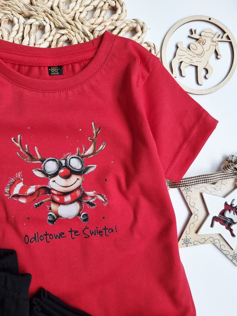 - Koszulka dla dziecka ze świątecznym nadrukiem stworzonym specjalnie na tę okazję.