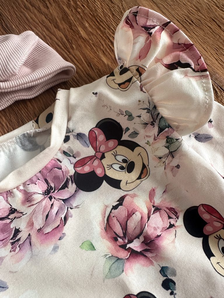 - Koszulka dla dziewczynki z długim rękawem kwiatowy wzór z myszką Minnie.
