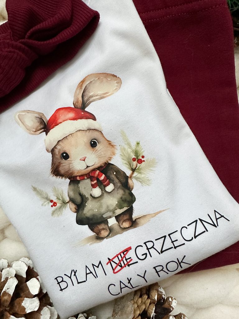 Napis w wersji dla dziewczynki “Byłam grzeczna” lub dla chłopca “Byłem grzeczny”.