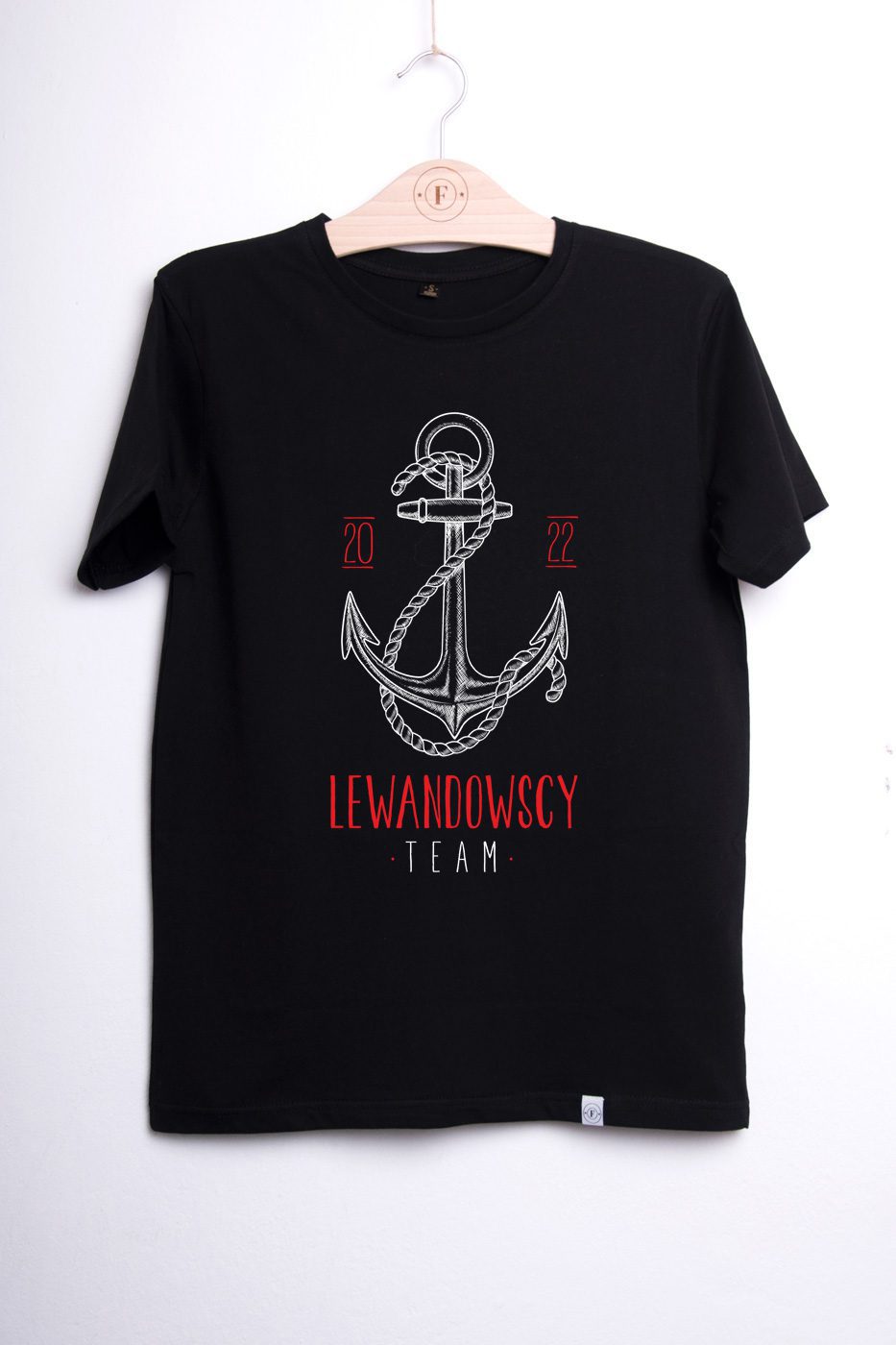 - Koszulka męska z nazwą teamu, nadrukiem kotwicy oraz rokiem