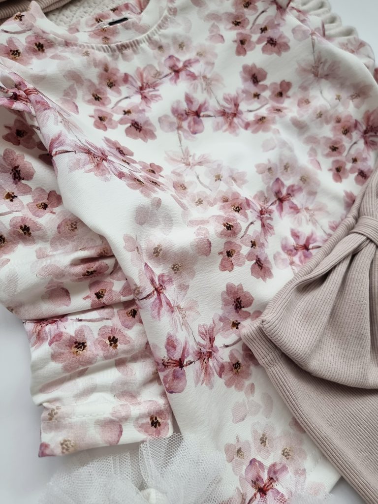 - Koszulka dla dziewczynki z długim rękawem kwiatowy wzór.