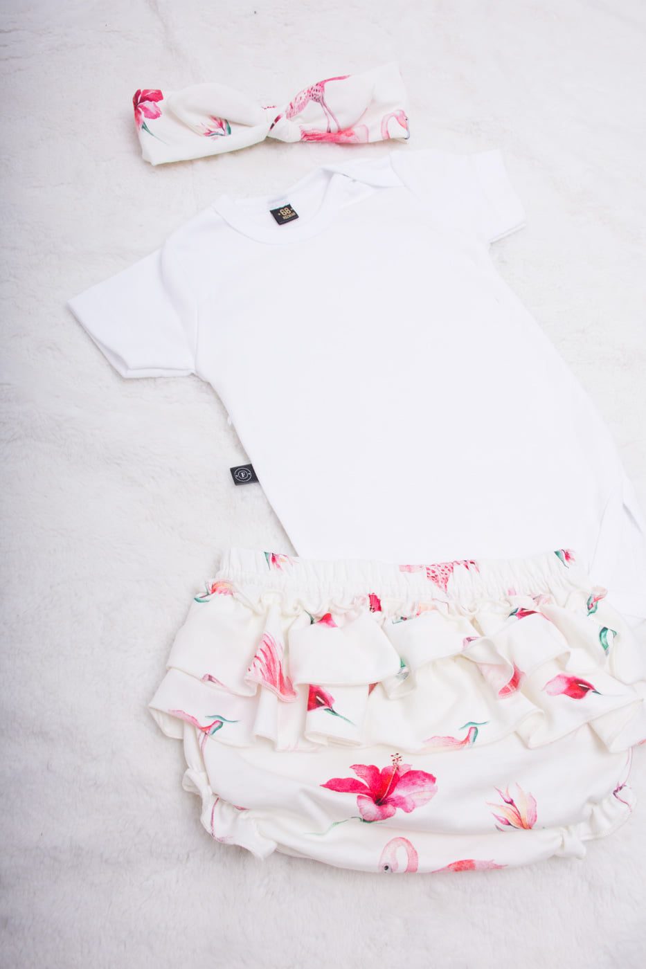 Starannie wykonana opaska pin up w różowe kwiaty i flamingi. Idealnie pasująca do bloomersów i tuniki z tym samym printem.