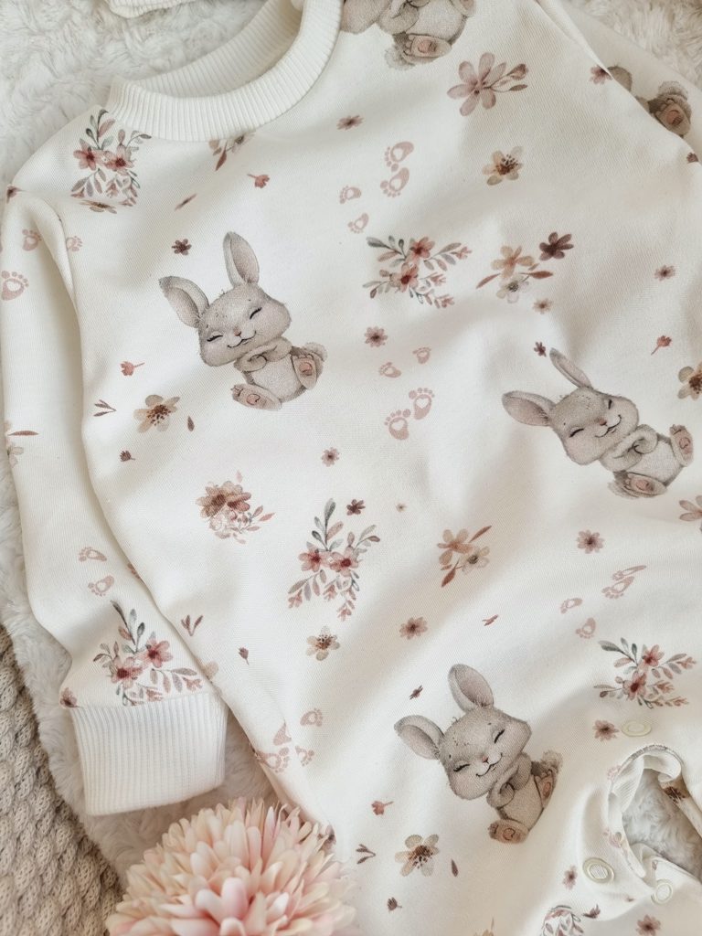 Pajac niemowlęcy bez stópek spacer z króliczkiem