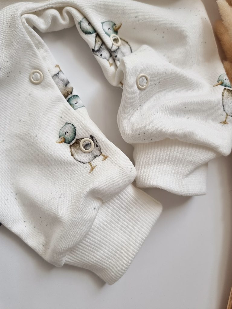 - Napy znajdujące się przy szyi oraz w kroku ułatwią przebranie maluszka.