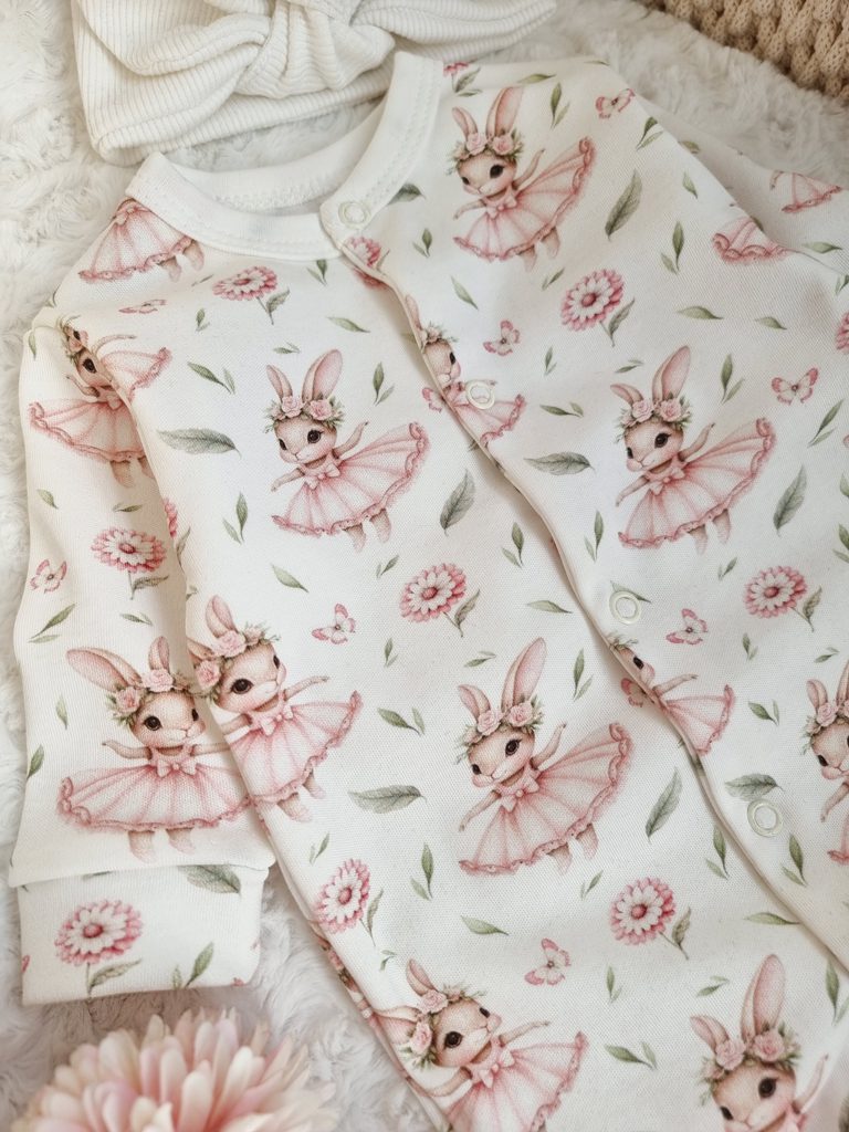 Bawełniany pajac niemowlęcy ze stópkami króliczek baletnica