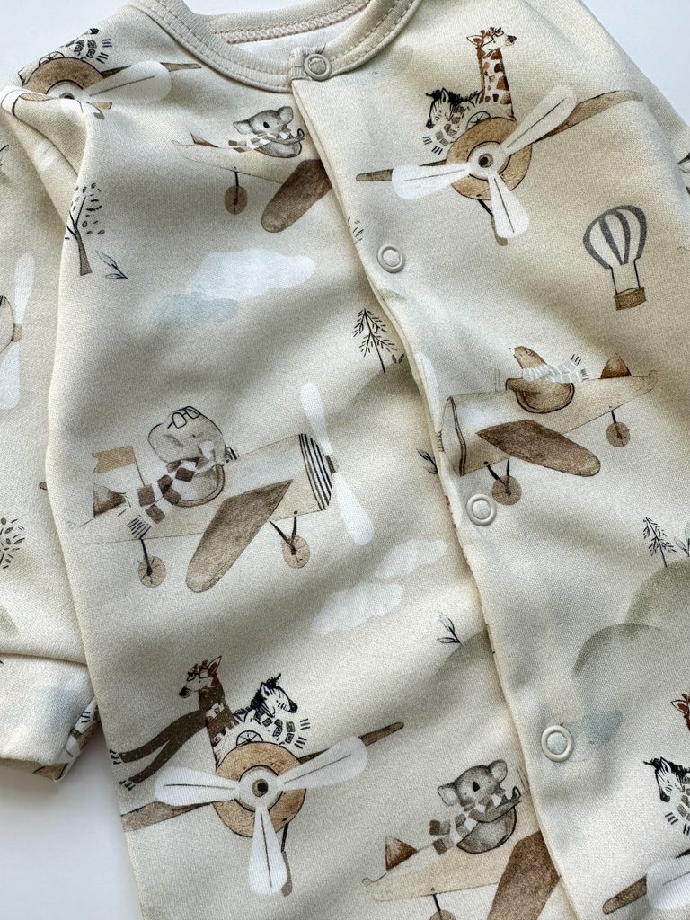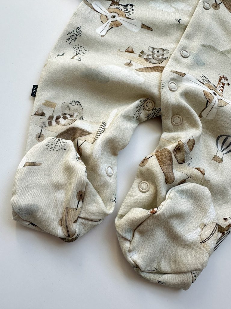 Pajac niemowlęcy ze stópkami zwierzątka w samolocie