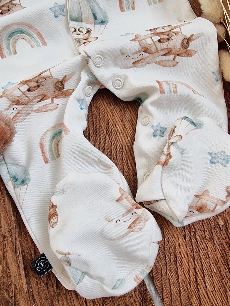 Bawełniany pajac niemowlęcy ze stópkami miś w krainie tęczy