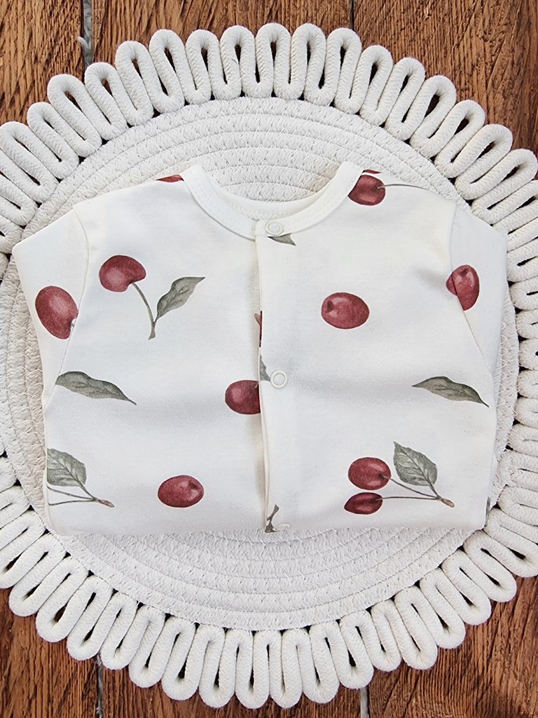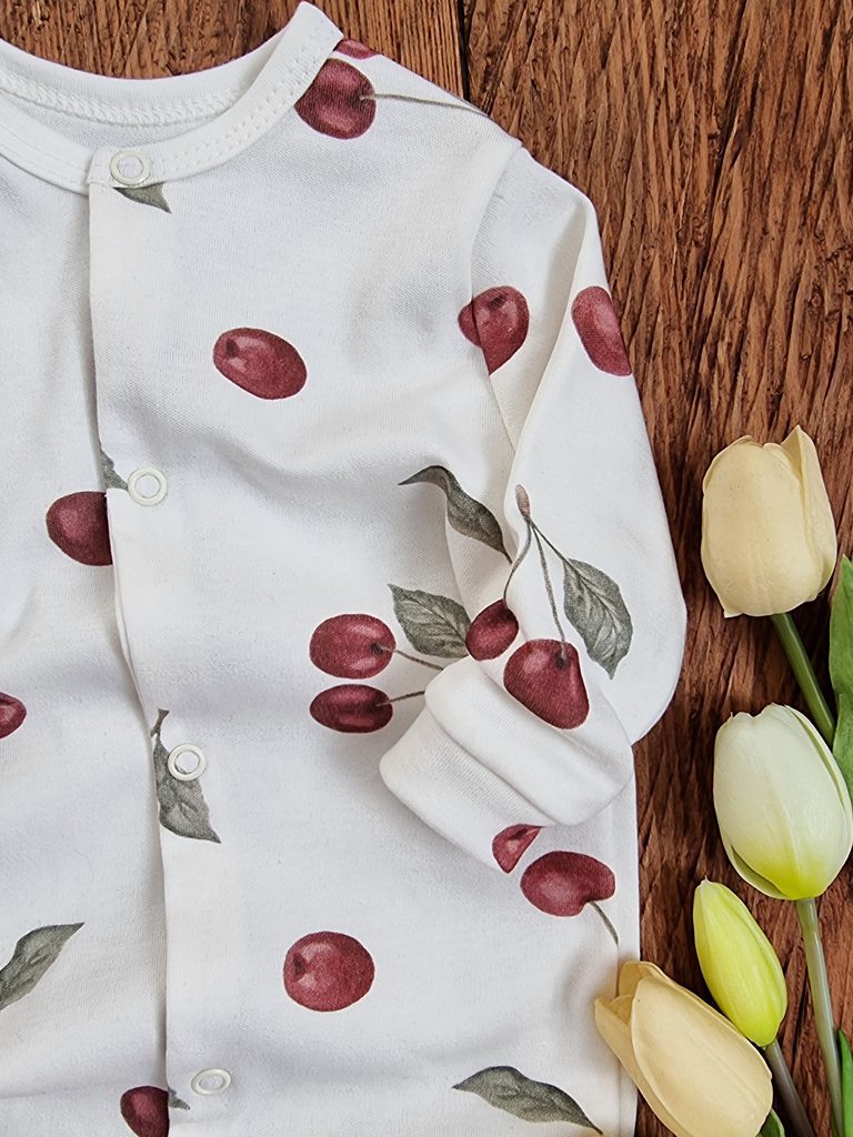 Bawełniany pajac niemowlęcy ze stópkami czereśnie