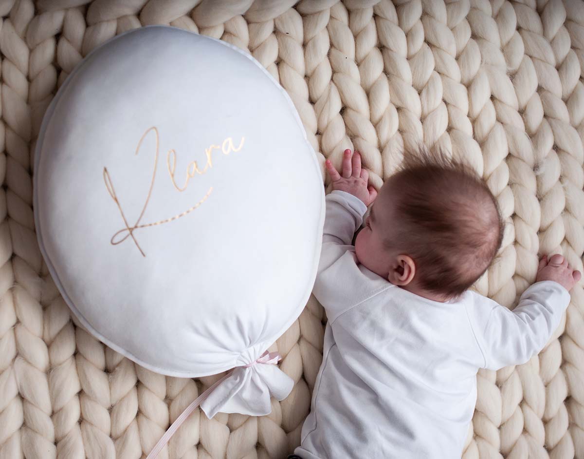- Poduszka w kształcie gwiazdki ze złotym imieniem dziecka