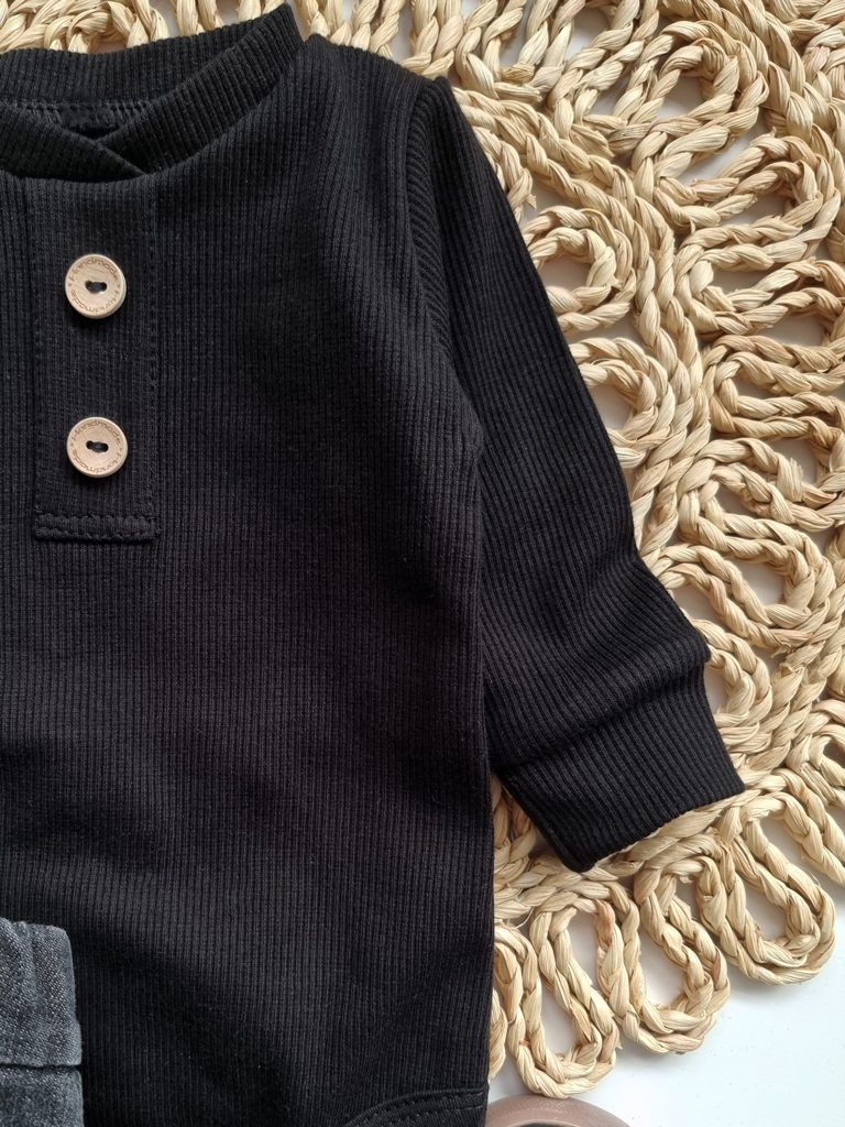 - Prążkowane body niemowlęce czarne z długim rękawem