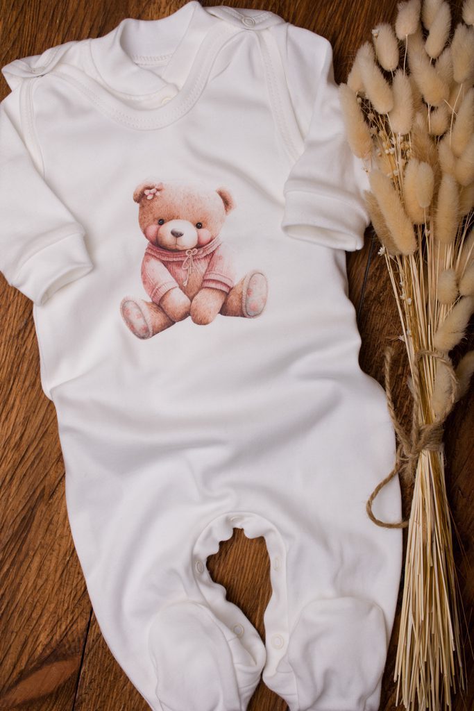 Śpiochy niemowlęce miś w różowym sweterku + kaftanik