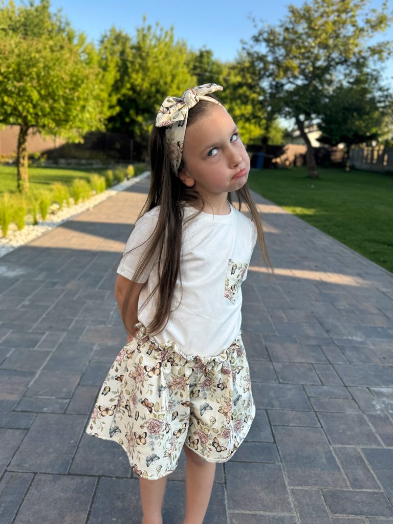 Spódnico-spodenki w kwiatuszki to idealne rozwiązanie dla aktywnych małych dziewczynek.