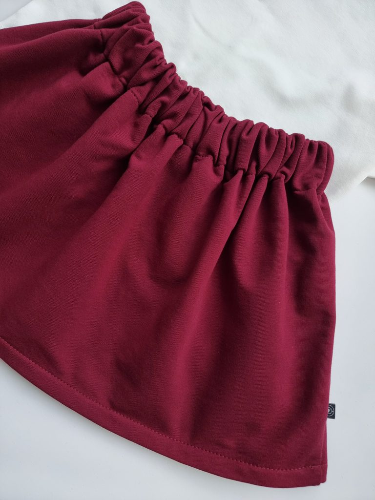 Wygodna spódniczka uszyta z dresówki szmerglowanej, wewnątrz delikatny “meszek”.