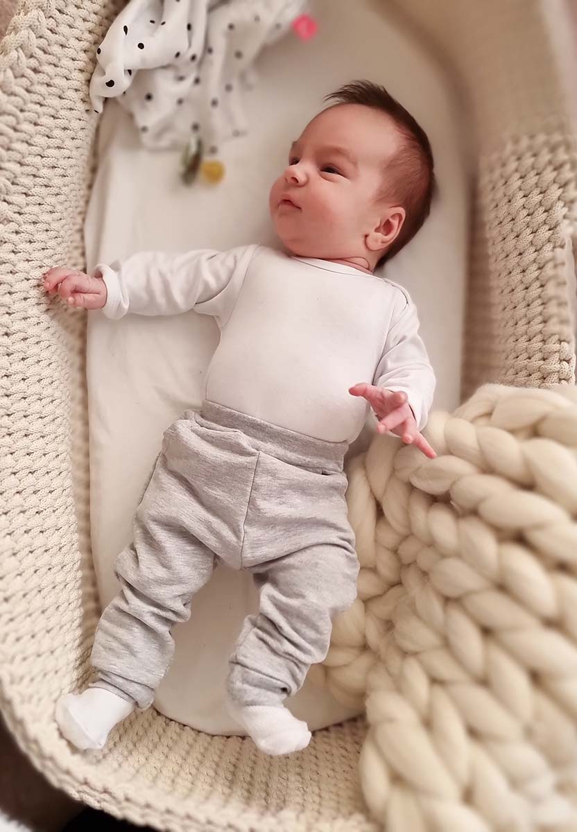 Spodnie z lekko obniżonym krokiem, modnym fasonie, wygodne dla maluszka