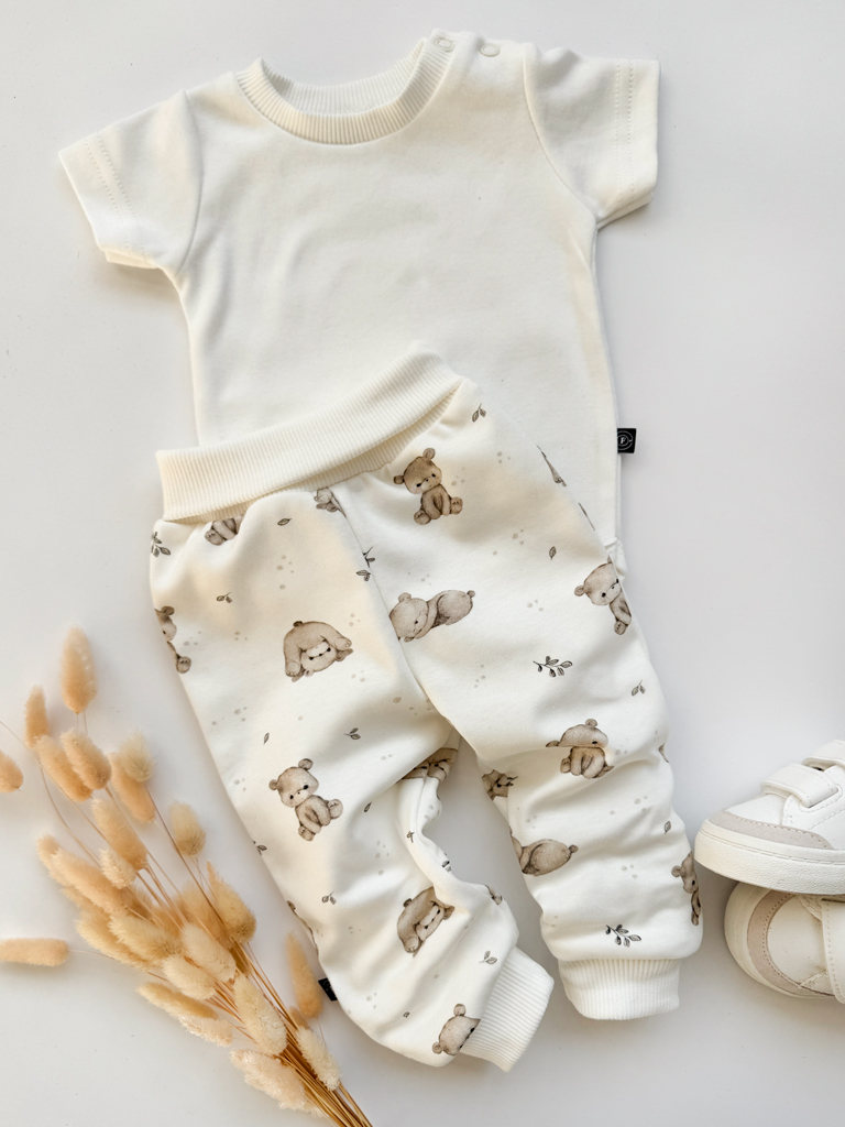 Spodnie bawełniane dla niemowlaka, które łączą w sobie wygodę i modny design.