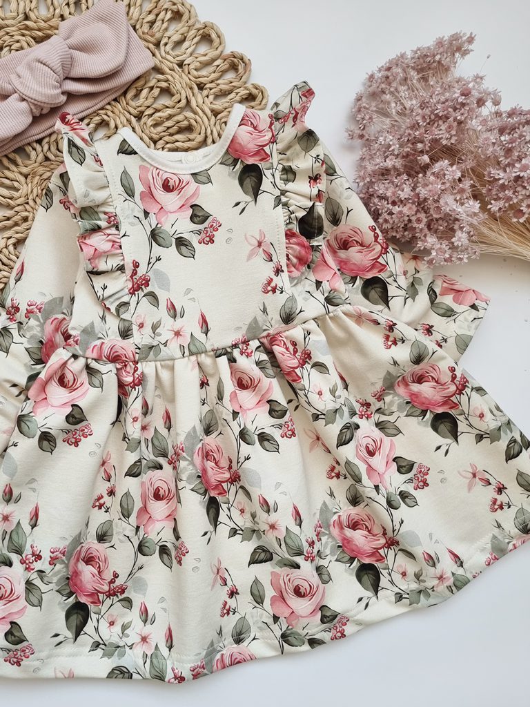 - Sukienka niemowlęca z falbankami przy ramionach.