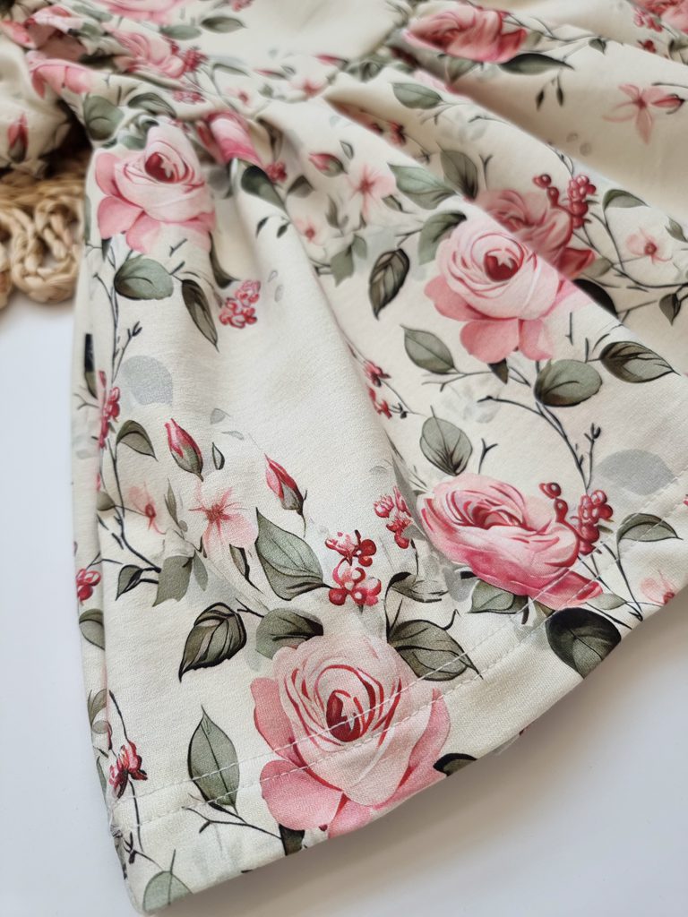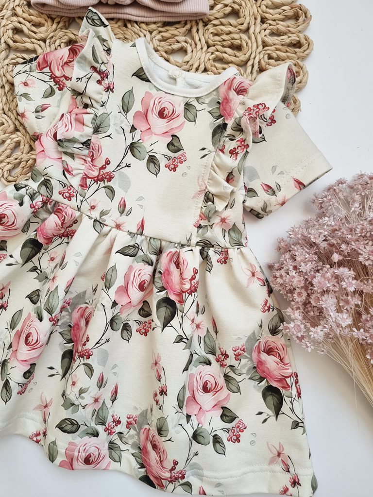 Sukienka z krótkim rękawem z falbankami różane impresje