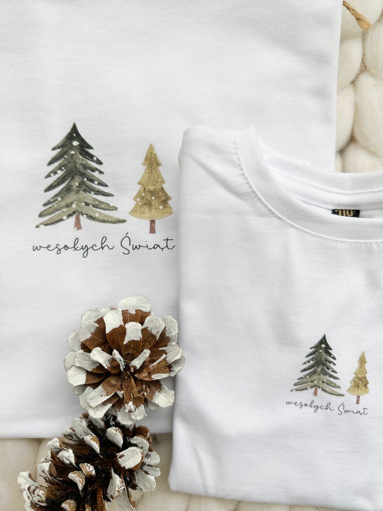 - Koszulka lub body dla dziecka ze świątecznym nadrukiem stworzonym specjalnie na tę okazję.