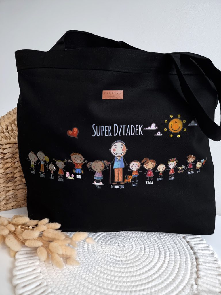 Dzięki naszemu prostemu w obsłudze kreatorowi online możesz samodzielnie, w prosty sposób, zaprojektować nadruk na torbie. Własnoręcznie zaprojektowana torba z pewnością będzie niezwykłym prezentem na Dzień Babci / Dzień Dziadka, urodziny, imieniny, czy inną specjalną okazję.