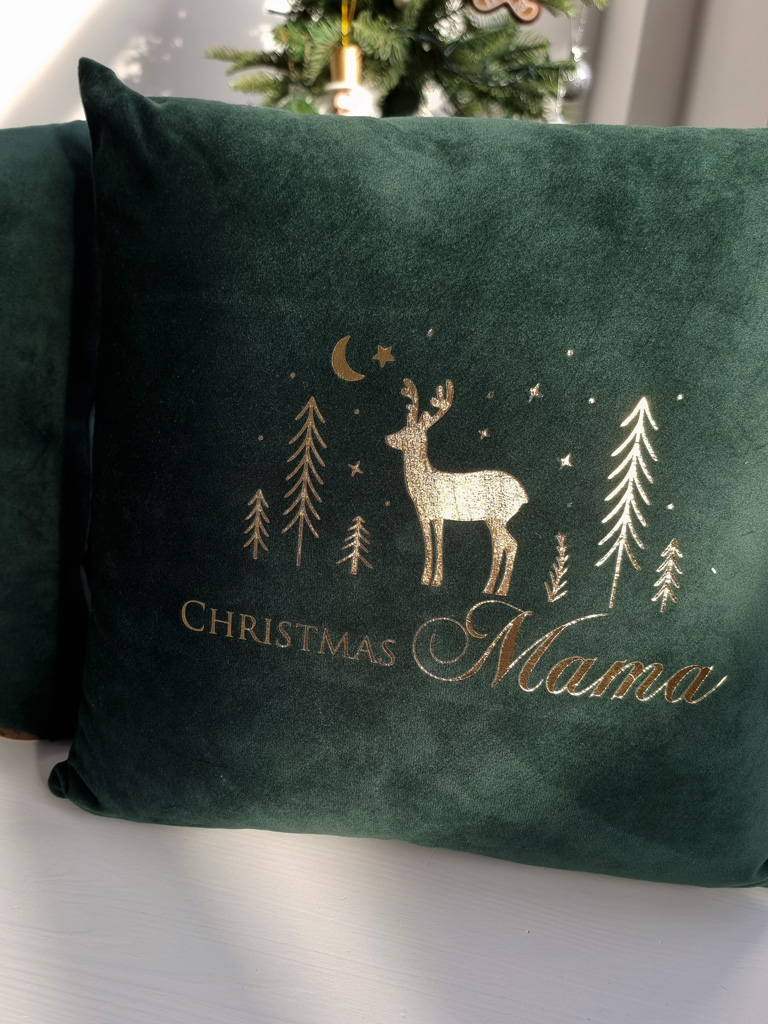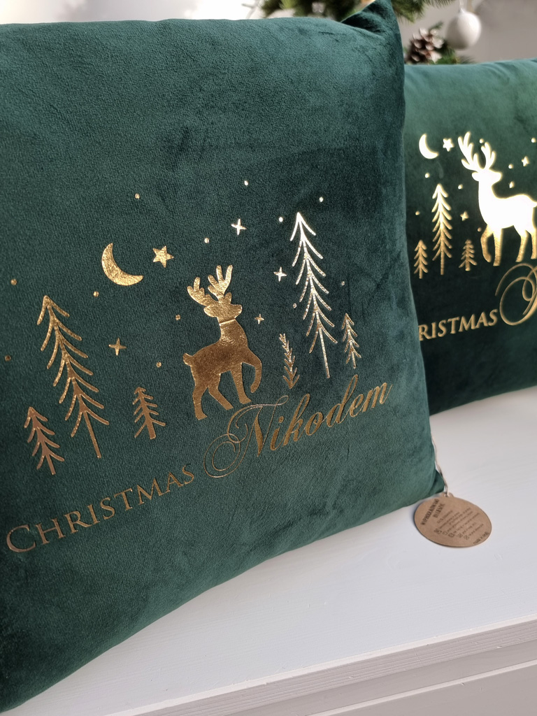 - Poduszki welurowe z efektownym świątecznym nadrukiem.