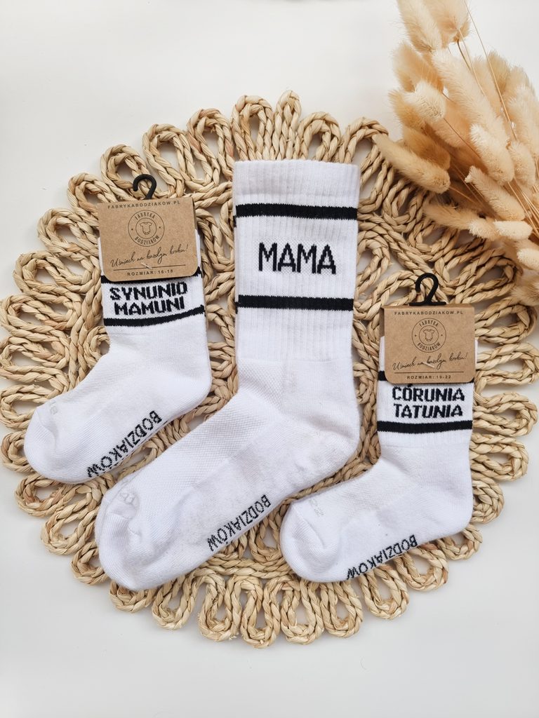 Skarpetki dziecięce z napisem córunia tatunia / synunio mamuni